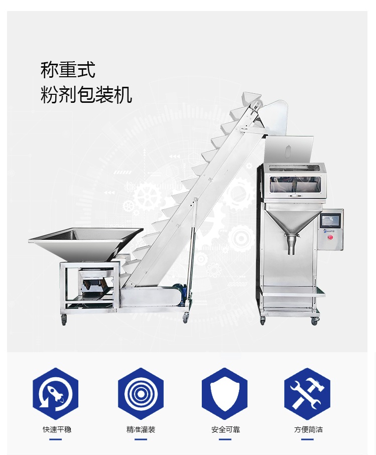 ZX-C型稱重式定量包裝機是一種機械給料與電子稱重組合的定量裝袋機械,廣泛適用于食鹽、化工原料、飼料、醫藥、糧食、食品添加劑等流動性較好的顆粒或粉狀物料的定量包裝,其優點是:操作簡單、性能可靠、計量準確、價格便宜、耐腐蝕性強,是一種理想的定量包裝機械。